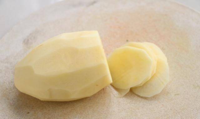 1.準備一個中等大小的土豆。先將土豆去皮,然後切成薄片。切片越薄越好!