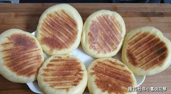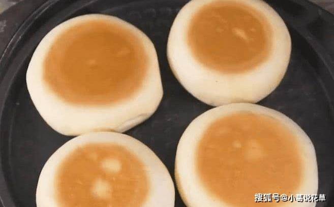 4、經過二次發酵的面包胚非常松軟。電餅鐺燒熱後,將面包胚放入鍋中,不要刷油。蓋上蓋子,記得邊烤邊不停地翻,直到兩面金黃。