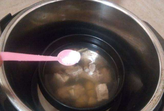 第四步:時間到後,加入切碎的橄欖和薑。將橄欖和生薑放入鍋中攪拌均勻,然後蓋上鍋蓋繼續燉約30分鐘。時間到後加少許鹽調味,讓燉出的橄欖排骨湯更香甜可口。會更好吃!加入鹽後攪拌均勻就可以瞭!