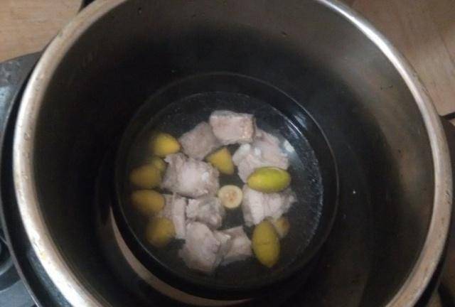 首先,準備好必要的食材:青橄欖、排骨、薑、鹽、羽扇豆