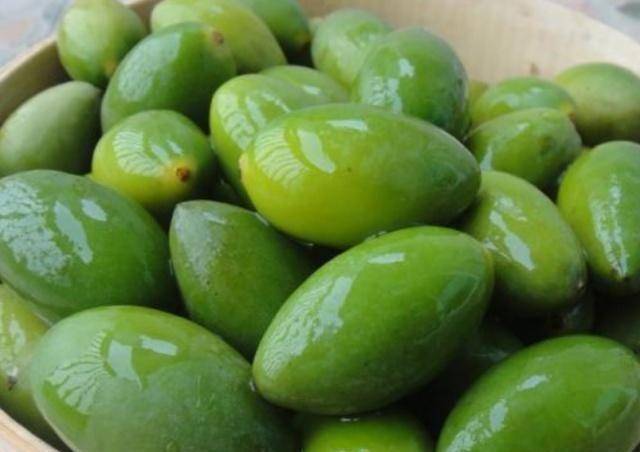 Step2:將準備好的青橄欖洗凈,將少量鹽放在手心反復搓揉橄欖,使橄欖更加幹凈!橄欖清洗幹凈後,用刀將橄欖切成兩半,放在一邊。