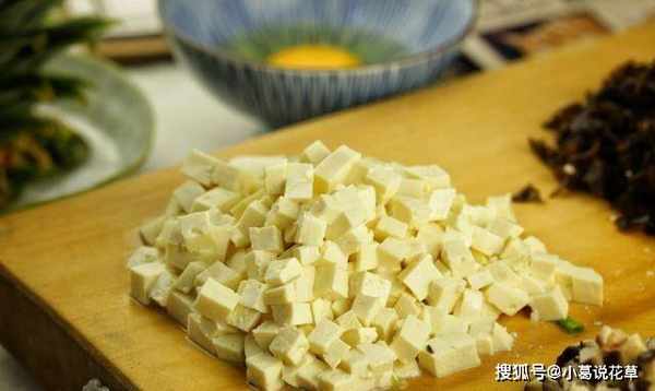 第二步:豆腐切塊。我們的豆腐用的是北豆腐,比較耐吃。