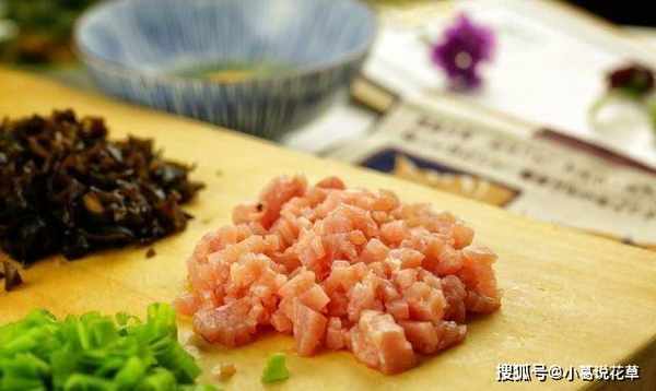 Step1:豬肉切小方塊,註意豬肉要幹凈,沒有肥肉。先切成條狀,再切成方塊備用。
