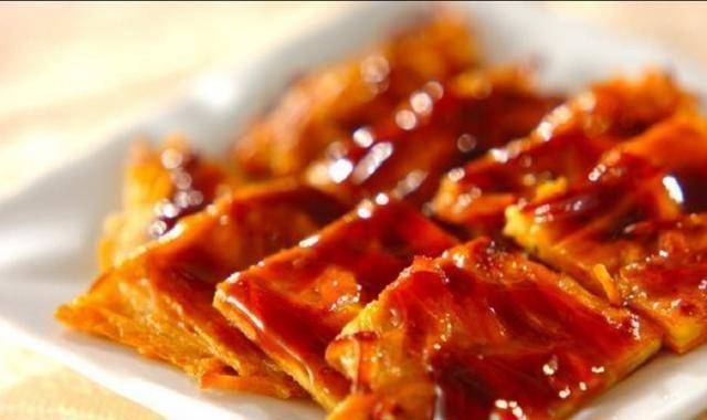 4.繼續放入鍋中,加大火力將胡蘿卜蛋羹切成酥脆的薄餅,兩面煎至金黃,香味四溢。