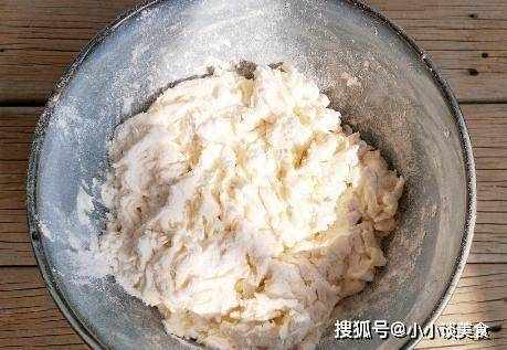 第二步拌勻,將面粉放入大碗中,一點點倒入融化的酵母水,待成團時,加少許鹽,揉成光滑的面團;