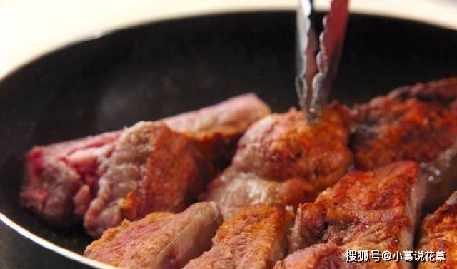 2.鍋裡放一大勺油,把排骨煎至兩面焦黃,開始冒出誘人的香味。在紅燒排骨之前,加入這一步會更香。