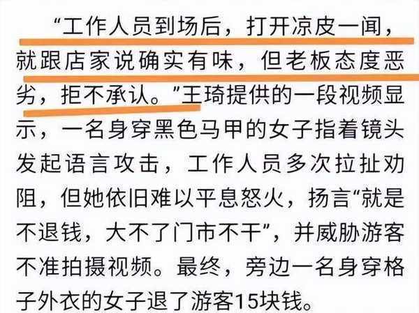 事情的緣由來自一位女子在景區買瞭一份15元的變質涼皮。