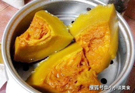 制作過程:第一步,將老南瓜去皮一塊,去皮,去果肉,清洗幹凈,切成小塊,鍋裡加水,把南瓜放入水裡開始蒸,蒸高溫約8分鐘;