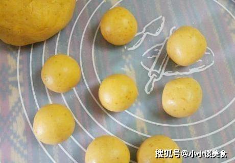 2、在南瓜泥中加入糯米粉的時候,記得要分小份慢慢加入,直到可以揉成面團為止。請記住,面團應該稍微軟一些,但不要粘手。揉好的面團不需要松弛,直接做以下即可;