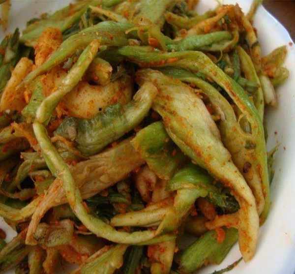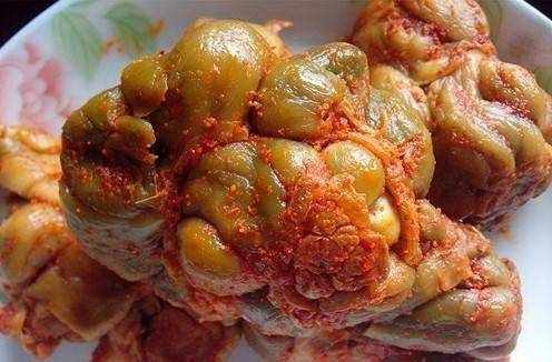 帶有酒香的芥末變得非常可口。如果你在使用白酒時有自釀白酒,最好使用這種白酒,因為自釀白酒是米香型的,芥末味是經過醃制後產生的。米飯的香味和這種芥末的味道真是讓人無法抗拒。