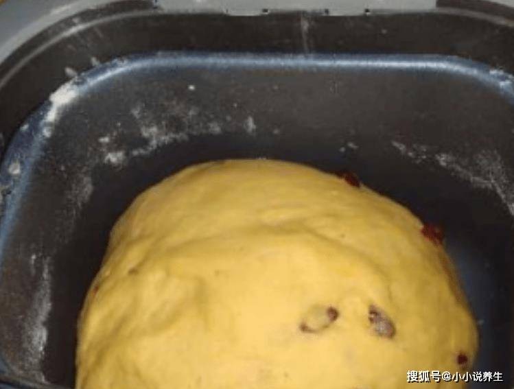 第二步,將溶解好的酵母水和適量的面粉一起放入碗中揉成面團,然後加入我們準備好的雞蛋和牛奶,再加入適量的蔓越莓和白糖。揉面團,然後醒。