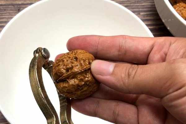 3.把洗凈的核桃夾碎,盡量把核桃殼、核桃肉、分心木夾碎,可以更大程度地析出營養物質。