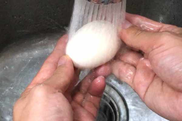 6.趁著在煮核桃水的階段裡,我們把雞蛋清洗幹凈。雞蛋上粘有雞糞等臟東西,也是很有必要清洗幹凈的。