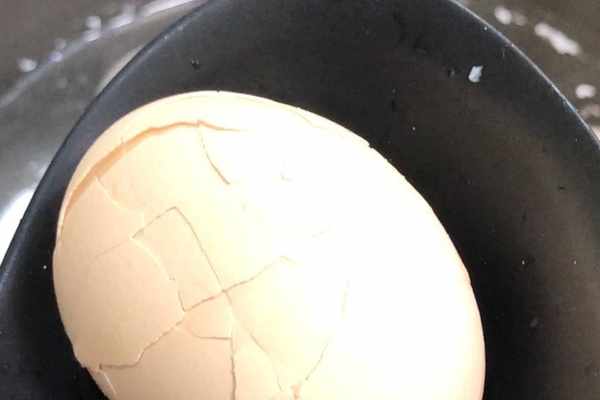 8.大火燒開後,把雞蛋撈起來,利用硬物把雞蛋的殼敲裂,這樣可以更好地讓雞蛋吸收核桃水裡面的精華。