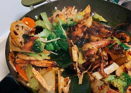 7.下入煮好的葷菜和蔬菜等