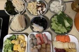 用料:蝦、雞翅、肥牛卷、香腸或午餐肉、土豆、藕、萵筍、玉米、西蘭花、油菜、香菜、金針菇、木耳、香菇、魚丸、蟹棒、牛肉丸、腐竹、年糕、寬粉、蔥薑蒜適量、幹辣椒花椒適量、鹽雞精適量、麻辣香鍋調料或者火鍋底料1包。做法:1.配菜完全根據自己的喜好,自己喜歡什麼就可以加什麼。藕片,土豆片別切太厚,不容易熟。