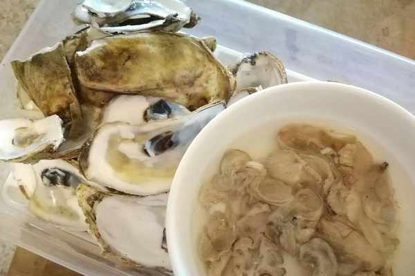 3、取出來的蠔肉要放在清水裡面清洗幹凈,蠔肉清洗幹凈之後放在一個碗裡面,蠔殼裡面的汁水也不要丟棄,一起放在碗裡面留著備用。可以加入少量的料酒用來去腥。