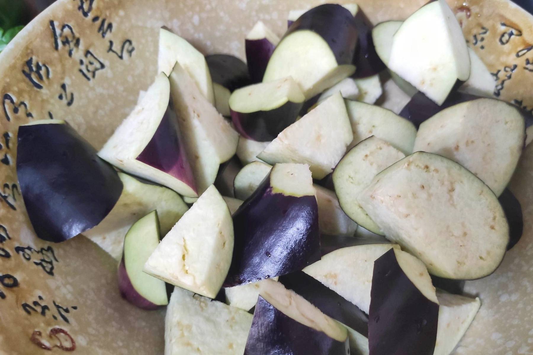 1、先把茄子洗凈,切成滾刀塊,加少許鹽,醃制十分鐘,沖洗一下,然後攥幹水分,這樣茄子在炸的過程中就不會吸入太多的油分。