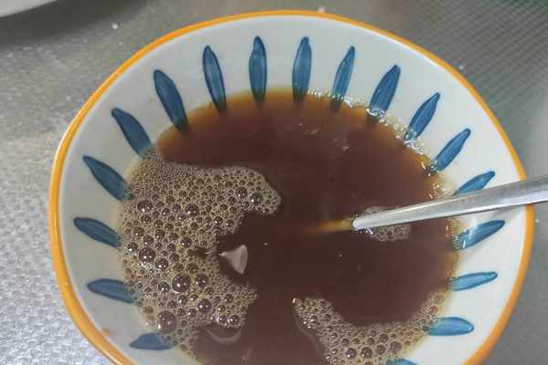 3、再準備一碗料汁,一會兒炒菜的時候用,這樣就不會在炒菜的時候手忙腳亂。【料汁】生抽1勺、蠔油1勺、老抽半勺、鹽少許、白糖半勺、淀粉1小勺、清水大半碗,攪拌均勻。