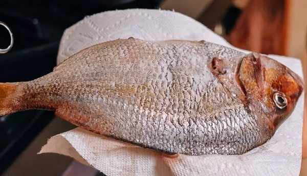 買魚的時候讓老板殺好,回傢後仔細處理每一處,再放流動水下沖洗幹凈,洗凈後的魚表面帶有很多水分,如果這個時候下鍋煎,不僅容易粘鍋,還容易炸鍋,相信有些朋友會這麼做,很怕油濺起來炸傷自己,就會趁著油不熱的時候將魚放進鍋裡,而這麼做更加錯誤,低溫時就下魚,魚皮更容易粘鍋,而且油溫升起來後,還是會炸鍋。