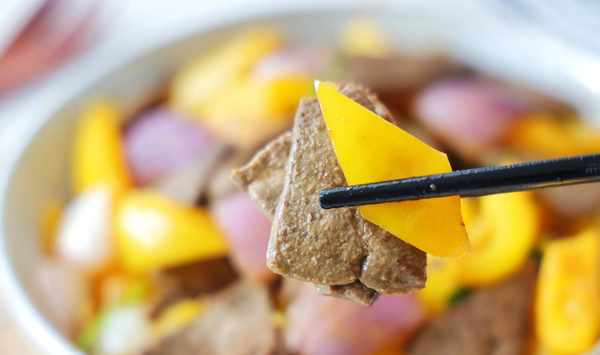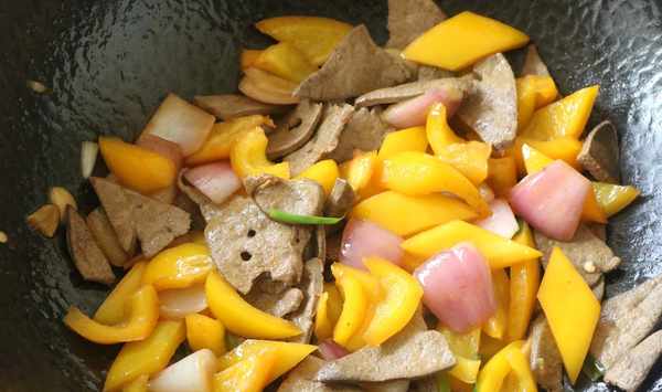 今天給大傢介紹一款特別營養又好吃的傢常美食。在食材搭配上就顯得非常獨特,主要是豬肝、彩椒和洋蔥。吃起來口感特別的別致喲,脆爽又滑嫩,而且一股淡淡的香味,別提多舒坦瞭。