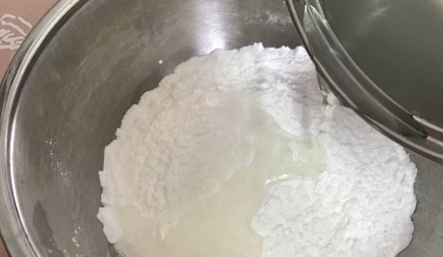 水晶皮:澄粉(小麥淀粉)125克,白糖40克,淀粉(玉米淀粉)40克,豬油25克,清水125克。