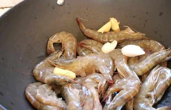 第一步,首先還是挑選自己喜歡的海鮮,基本上海鮮都可以煮著吃,將買回來的海鮮先用清水沖洗一遍,小編這次挑選的則是基圍蝦,所以在煮之前最好是用剪刀把蝦須跟蝦腳剪一下,要是介意蝦線的話也可以挑出來,等到處理好後往鍋中倒入少許的清水,用薑片跟蔥段時尚,把基圍蝦一個個鋪時尚到鍋中。
