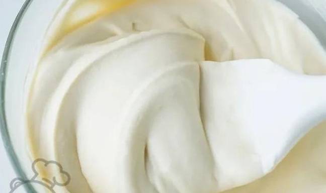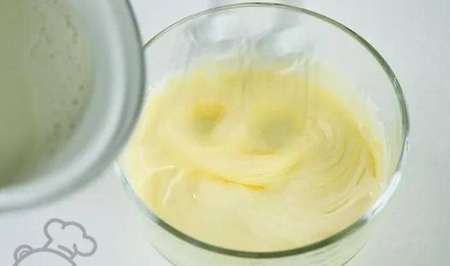12、奶油打至八九分發,取出豆漿卡仕達醬,攪散後與奶油拌勻;