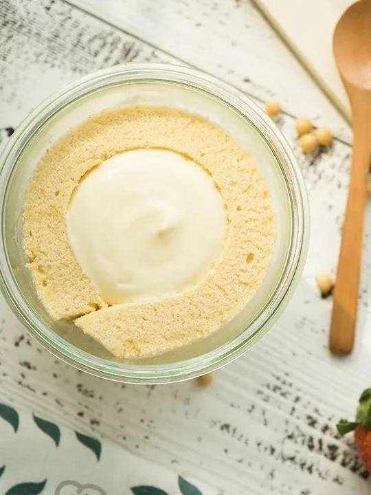 內餡用的是豆漿卡仕達奶油,清新不膩,冷藏後有著冰淇淋般的順滑口感。蛋糕體則加入瞭豆香十足的烘焙黃豆粉,非常加分,搭起來剛剛好!這裡我們還做成瞭裝罐的造型,帶出去野餐就更方便啦。