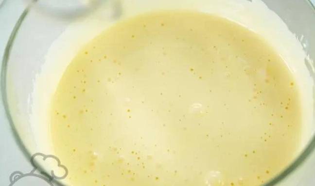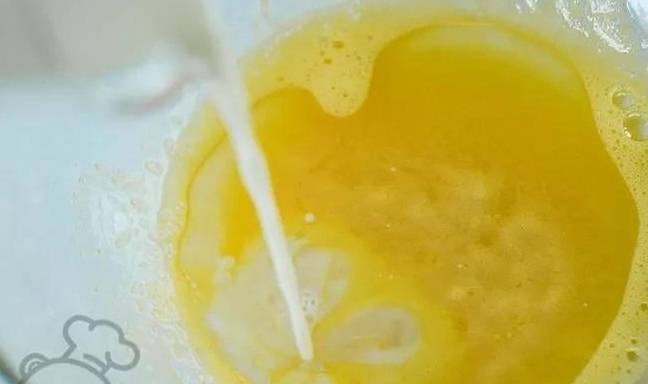 2、奶鍋中倒入豆漿,熱至溫熱,然後倒一半到蛋黃糊裡,註意邊倒邊攪拌,別燙熟蛋黃瞭;