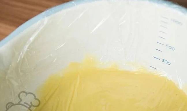 4、凝固後的卡仕達醬立刻倒入碗中,坐冰水攪至常溫,貼著表面覆上保鮮膜冷藏至少一小時;