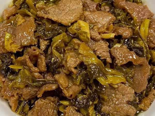 食材準備:酸菜、牛肉、蒜末、白胡椒粉。