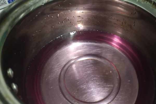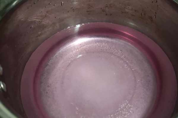 2、鍋內倒入2000克的水加入白涼粉煮開,邊煮邊攪拌均勻。我用火龍果的汁水調瞭個粉色的,顏色可以按照自己的喜歡的來調,不調顏色也是可以的,看起來更晶瑩剔透。