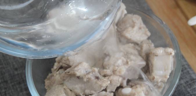 泡過溫水後的排骨,我們就可以將它撈出來瞭,用這個方法來給排骨焯水,不管是做糖醋排骨,椒鹽排骨。還是燉排骨?味道都是鮮甜又好吃而且沒有腥味哦。