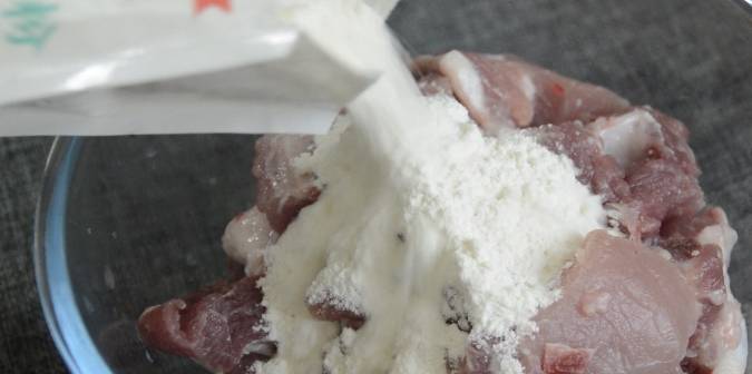 1、首先我們將購買回來的排骨裝入大碗中,然後再往碗中倒入適量的面粉。我們用面粉來清洗排骨,倒入面粉之後,再下手抓拌均勻,讓每一塊排骨都能夠均勻地沾裹上面粉。面粉呢有很好的吸附性,不僅可以吸附掉排骨表面上的灰塵,雜質,同時還可以將它的血水給吸附出來。