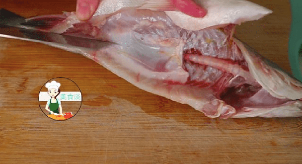 2、鱸魚把內臟處理幹凈,從魚肚子的部分剪開,魚背部切兩花刀方便入味。魚肚子裡的黑膜一定要清洗幹凈,魚鰓和黑膜是魚腥味的主要來源,魚的牙齒也要清洗幹凈。