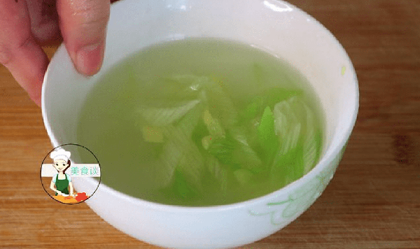 3、準備小半碗的清水,加入部分生薑片和蔥段抓勻,把蔥薑的汁水抓出來,做蔥薑水。