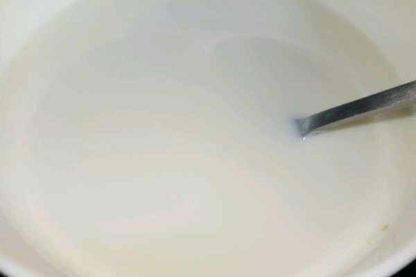 4、把120g牛奶放入微波爐,微波爐開高火,熱半分鐘以後把牛奶拿出來,加入糖,用筷子或者勺子輕輕攪拌至糖融化,再加入80g牛奶拌勻,把攪拌好的牛奶放進微波爐裡,高火加熱一分鐘,把牛奶加熱至80度左右,拿出來。