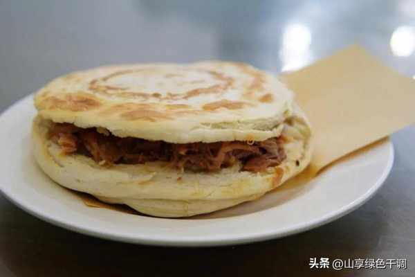 大傢常說的西安肉夾饃其實指的都是臘汁肉夾饃,裡邊隻有豬肉,外地賣的西安肉夾饃裡邊都加青椒,正宗的是絕對沒有的,剛烤出來的白吉病一夾,一口飽滿爆汁,特別的爽。