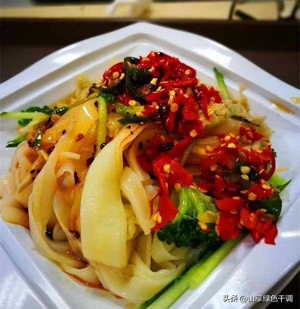 麻醬涼皮也是米皮,它是芝麻醬拌的,是正宗的回民清真食物。