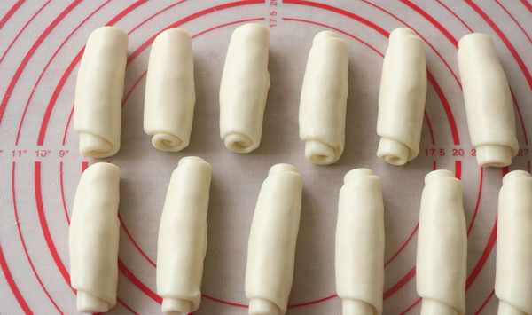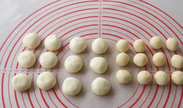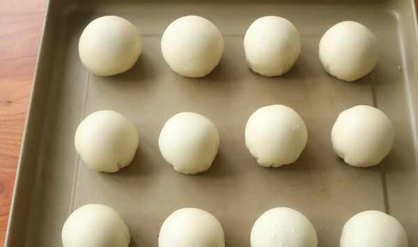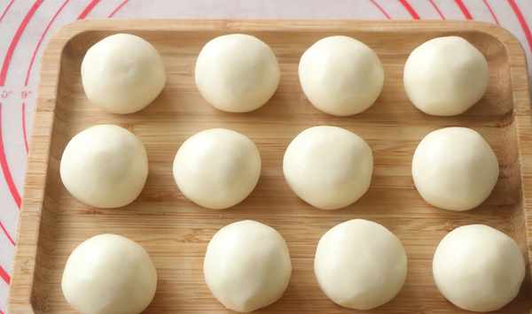 6、把水油皮和油酥的面團全部分成等量的12等份;