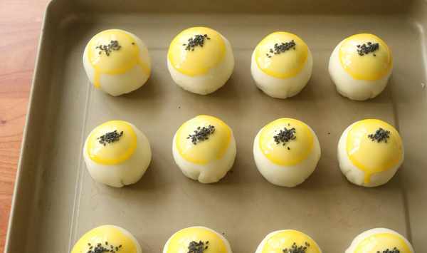 12、表面刷一層蛋黃液,撒適量的黑芝麻;