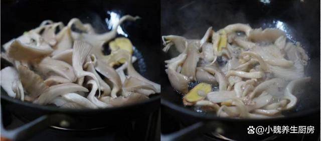 第六步:倒入一些平菇炒至變軟,加上兩大碗開水,蓋上鍋蓋再次煮沸,放入一些豆腐塊,燜煮幾分鐘。
