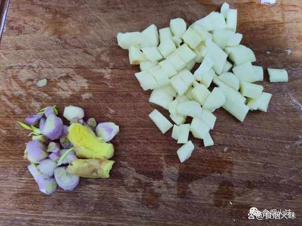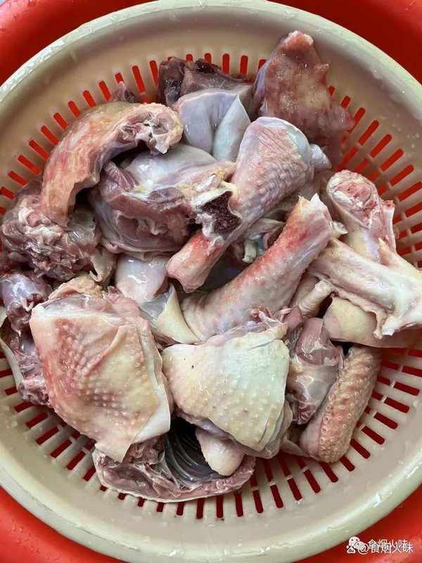 1.備好的雞肉洗凈,然後用刀把雞肉剁成小塊放在盆中備用;