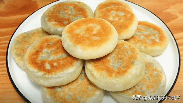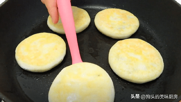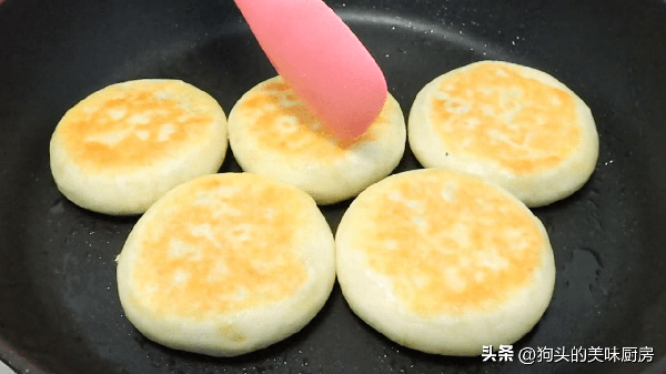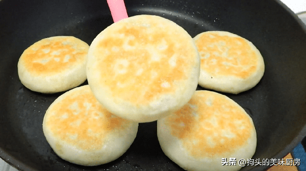 10.反復翻面多次,一直烙到兩面顏色金黃,餅面鼓起的程度就可以出鍋瞭。