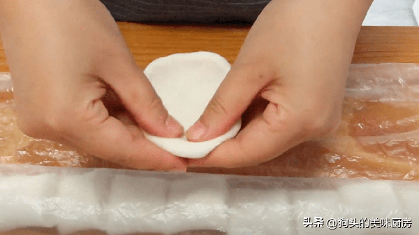 6.包入適量的餡料之後把它包起來,用虎口位置往上收就可以瞭。