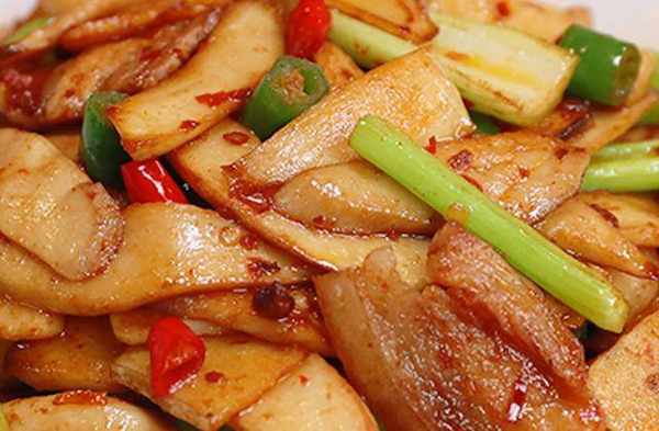食材準備:五花肉50克,杏鮑菇250克,芹菜1根,杭椒2個,小米椒3個,大蒜2瓣,豆瓣醬1勺