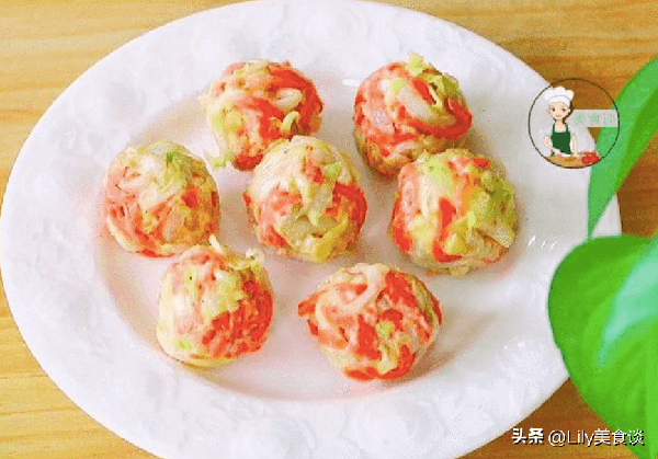 5、揉成一個個蔬菜丸子,沸水上鍋蒸8分鐘,出鍋搭配上蒜蓉辣醬蘸水吃特美味。