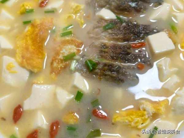5、大概煮瞭五分鐘,煮至湯水濃白,再放入美豆腐、雞蛋,繼續煮五分鐘。煮好瞭之後,撒上枸杞子,加入食鹽和胡椒粉調味,撒上蔥花即可出鍋開吃。