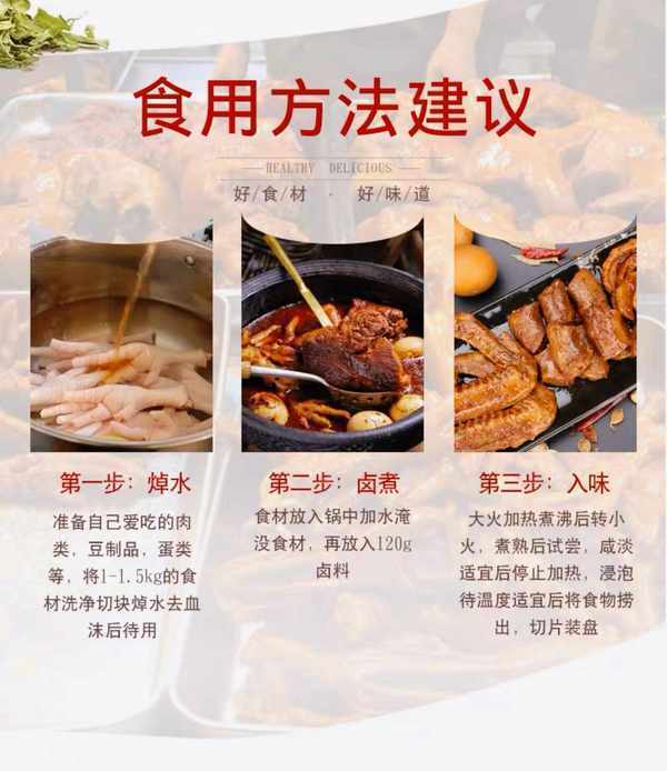 食材:雞翅,鴨腳,鴨脖,雞腳,豆制品,蛋類,五香鹵料包。